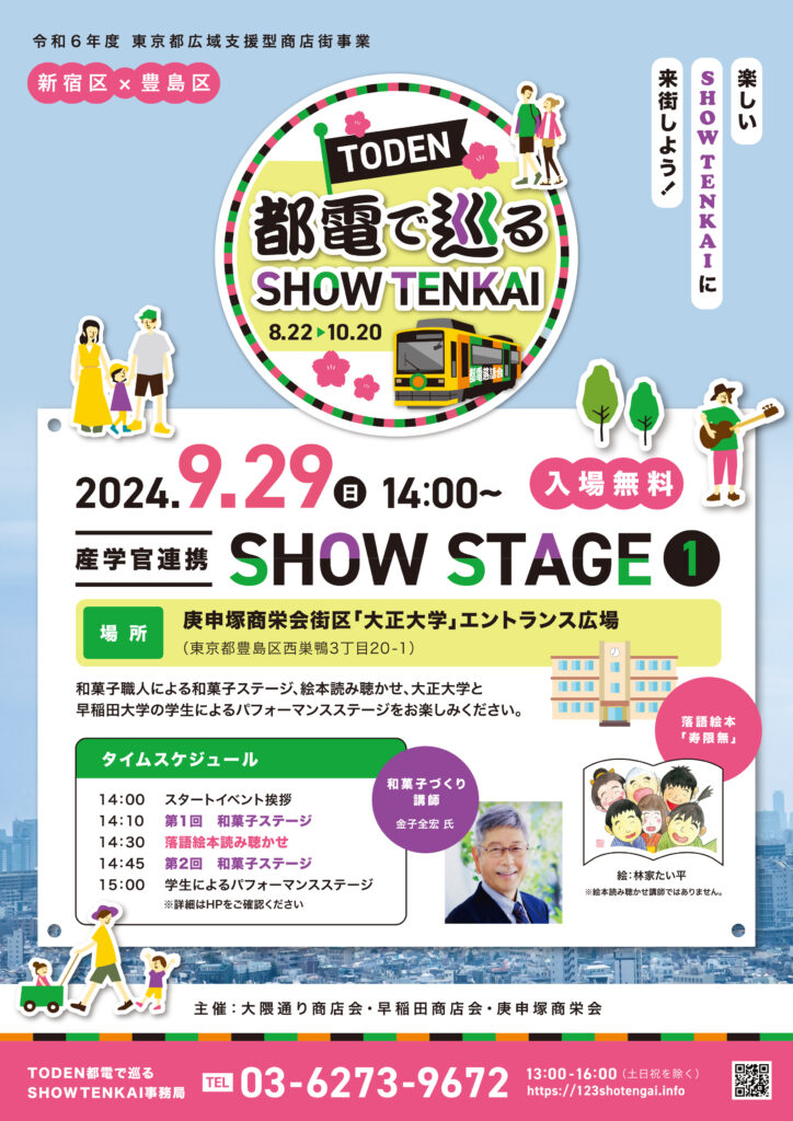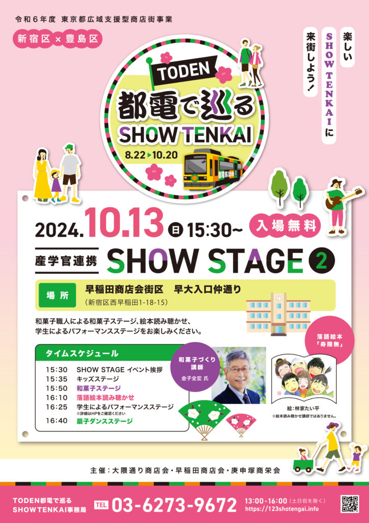 令和6年度東京都広域支援型商店街事業として、大隈通り商店街会・早稲田商店会・庚申塚商栄会主催の「TODEN都電で巡るSHOWTENKAI」を開催いたします。スタートとなる8月26日(月)に「オープニングファンファーレ」「 …